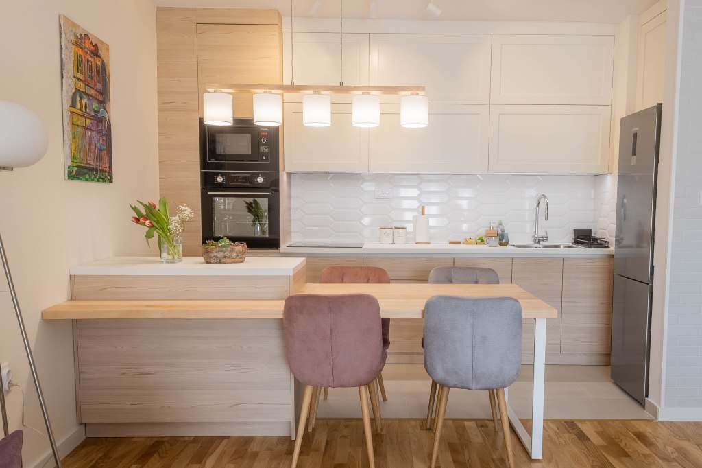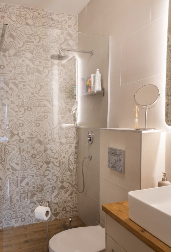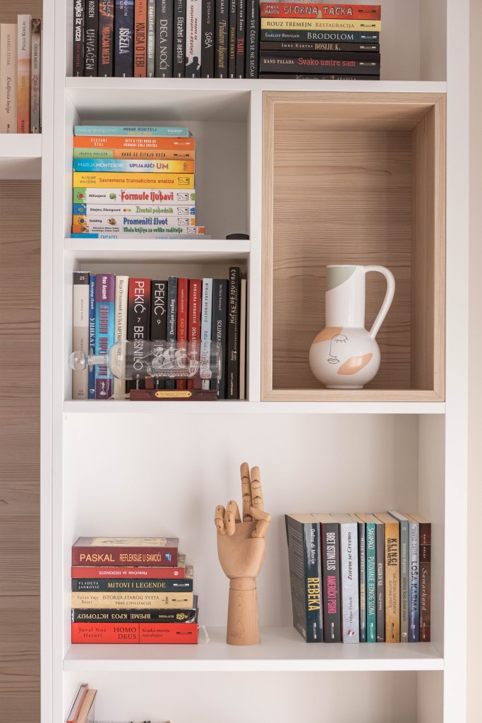 Kombinacija neutralnih tonova i dezena svetlog drveta